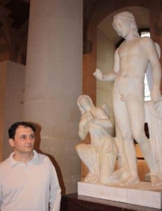 Aproximadamente de la misma época del relato es la estatua de la foto superior, que ahora se puede encontrar en el Museo del Louvre en París. Si bien es cierto que es más popular otra escultura del mismo tema del siglo XVIII, del italiano Antonio Canova, que se encuentra en otra sala del museo.