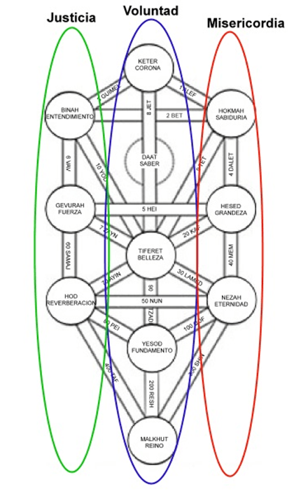 - Una ley del 3, donde están las tres Madres, que son aspectos de las triadas en las que se relacionan los sefirot.